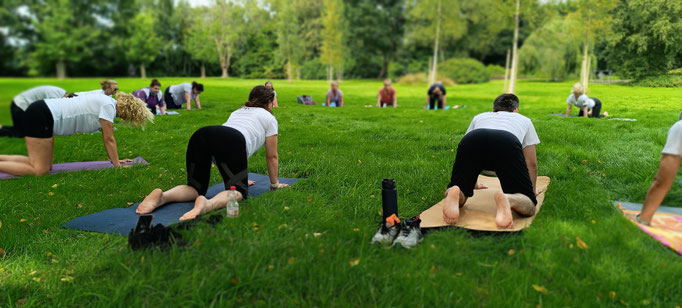 Wir laufen (walken, gehen) 6 km durch den Kurpark Bad Bederkesa direkt neben der Moor-Therme. Die Walker starten zum Schluss mit zeitlicher Verzögerung. Dann treffen wir uns auf der Matte und erfahrene Yoga-Lehrer:innen begleiten dich durch eine wundervolle Yoga-Sequenz für alle Level. Eine anschließende Klang-Meditation rundet den Yoga-Triathlon ab. Wer nicht mitlaufen möchte, kommt einfach zum Yoga (und umgekehrt :-))